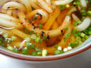 3.うどんに七味を入れる